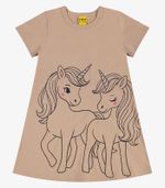 Vestido infantil Rovi Kids confeccionado em meia malha, ideal para garantir conforto durante o uso. Possui modelagem reta, com manga curta e estampa localizada de unicórnios na parte frontal, com detalhe em glitter que dá um toque especial e delicado à peça. Leve e fresquinho, é perfeito para o dia a dia das pequenas, combinando estilo e praticidade em uma única peça. Ideal para passeios, escola ou momentos de lazer.