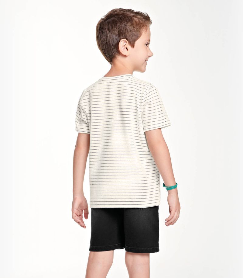 A Bermuda Jeans Infantil Masculina Trick Nick é a escolha perfeita para os pequenos que buscam conforto e estilo. Confeccionada em jeans black dalaman, ela oferece um toque moderno e despojado. O cós embutido com elástico garante um ajuste seguro, enquanto o cadarço funcional permite personalizar a cintura conforme necessário. Com bolsos práticos, é ideal para guardar pequenos tesouros do dia a dia. Seu design versátil combina facilmente com diversas camisetas, tornando-a uma peça essencial.