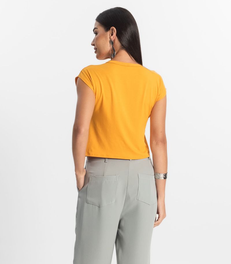 Blusa Básica Feminina Viscotorcion Rovitex Amarelo