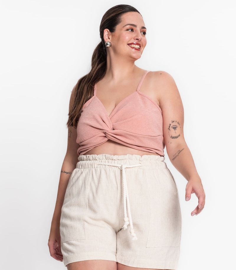 Blusa Cropped Feminina Plus Size Secret Glam Rosa