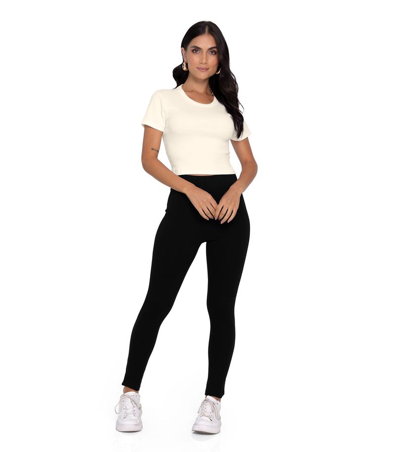 Blusa Cropped Ribana Básica Rovitex Bege
