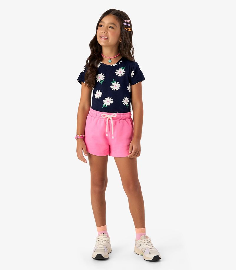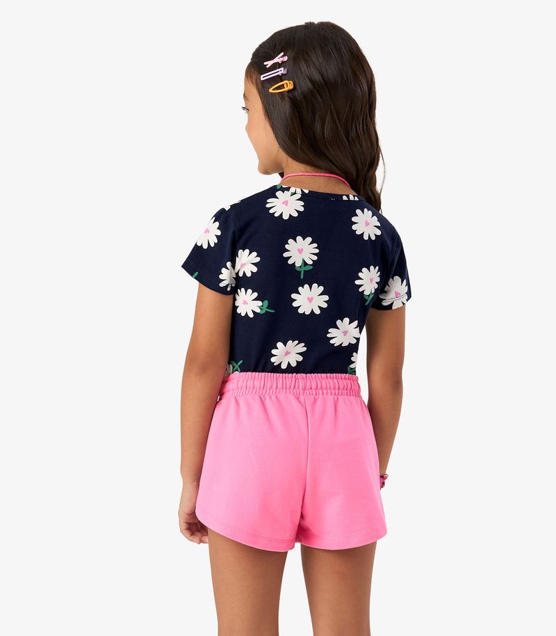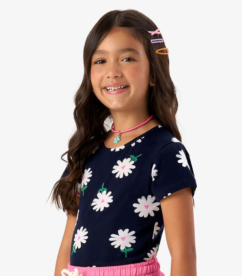Blusa feminina confeccionada em cotton, tecido macio e confortável. Possui mangas franzidas com detalhe delicado, acabamento no decote em friso e barra com costura reforçada. A frente da peça conta com estampa localizada de flores, com aplicação de glitter e strass termocolante, trazendo brilho e charme ao visual. Ideal para compor looks alegres e estilosos, garantindo praticidade e um toque especial para o dia a dia.