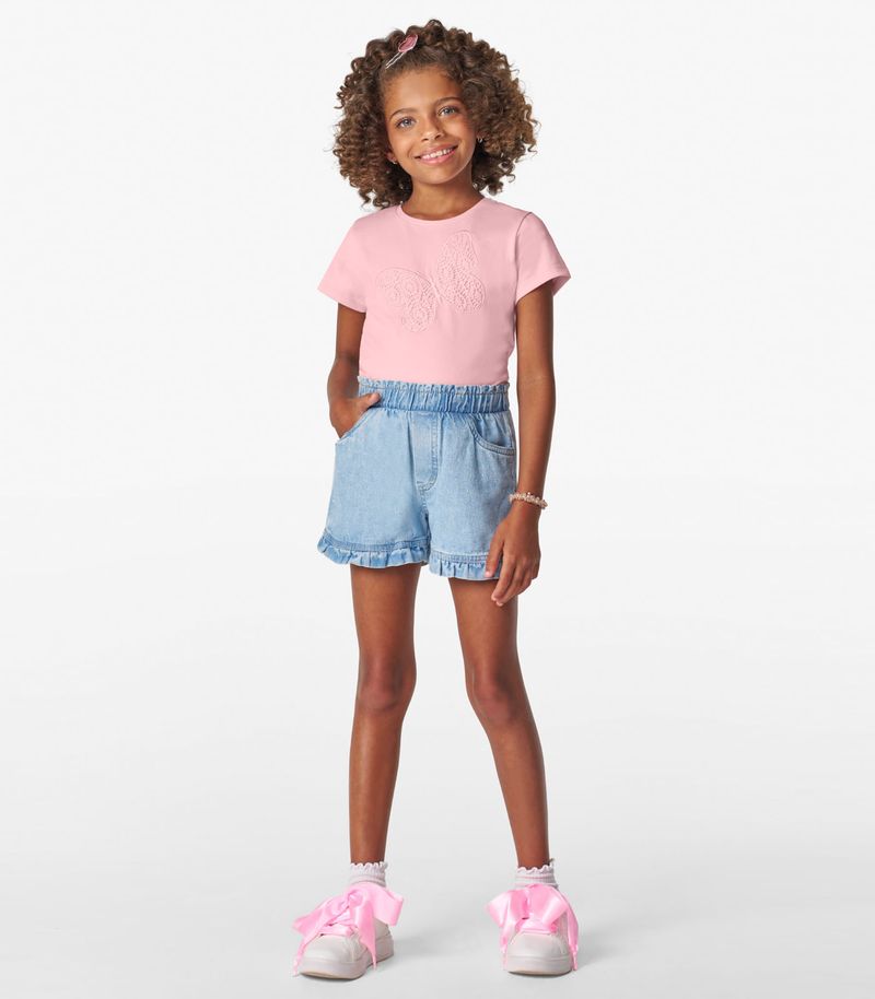Blusa feminina Infantil Trick Nick confeccionado em Cotton Leve, leve e delicado. Possui aplique bordado. A barra tem bainha fina que valoriza o caimento. Ideal para ocasiões especiais com muito estilo e conforto.
