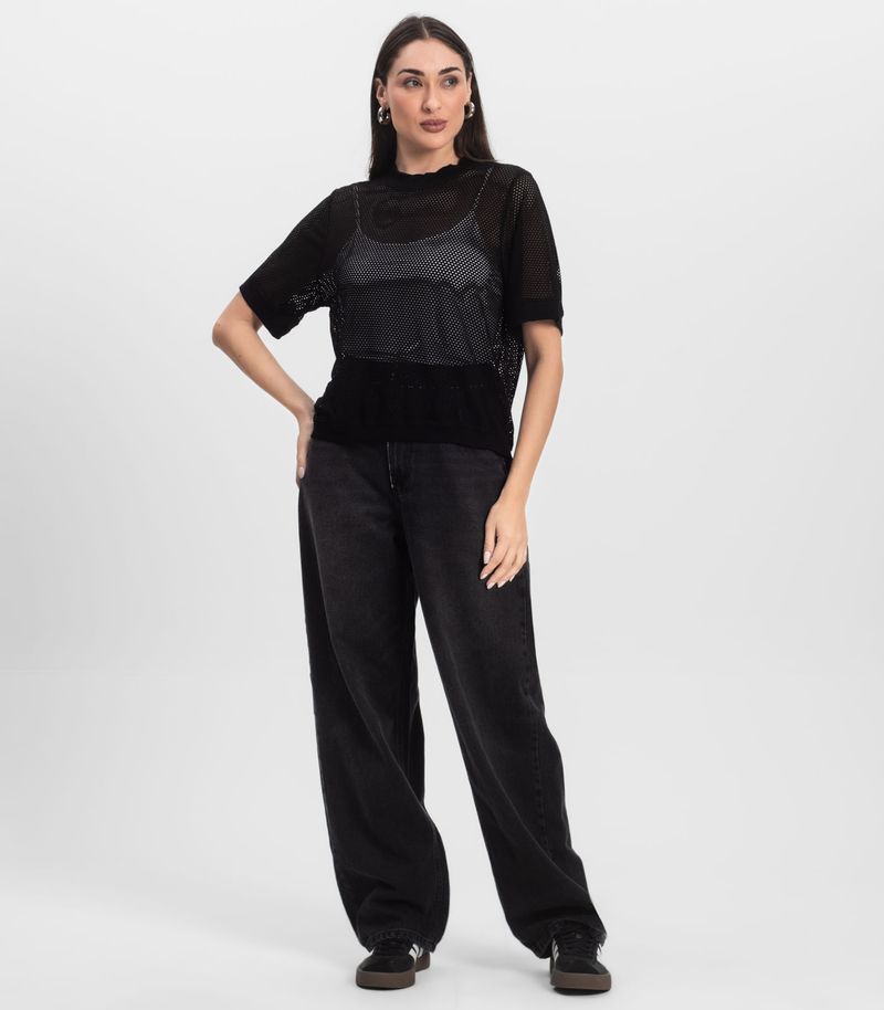 Blusa Feminina Infinita Cor, desenvolvida em Malha Screen, com textura leve e furinhos que lembram uma tela. Possui decote redondo em molde, manga curta com barra moldada e acabamento da barra também em molde, garantindo caimento estruturado e moderno. Ideal para composições fresquinhas e cheias de estilo. Perfeita para looks casuais com toque fashion.