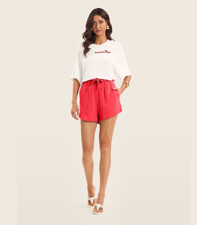 A Blusa Feminina Manga Curta Endless é confeccionada em Visco Tricot, oferecendo leveza e caimento confortável. Possui gola com acabamento reforçado, estampa frontal com bordado cordel e mangas amplas que garantem liberdade nos movimentos. A barra tem acabamento com costura dupla e abertura lateral com pesponto delicado, proporcionando charme e praticidade ao vestir. Ideal para um look moderno e despojado.