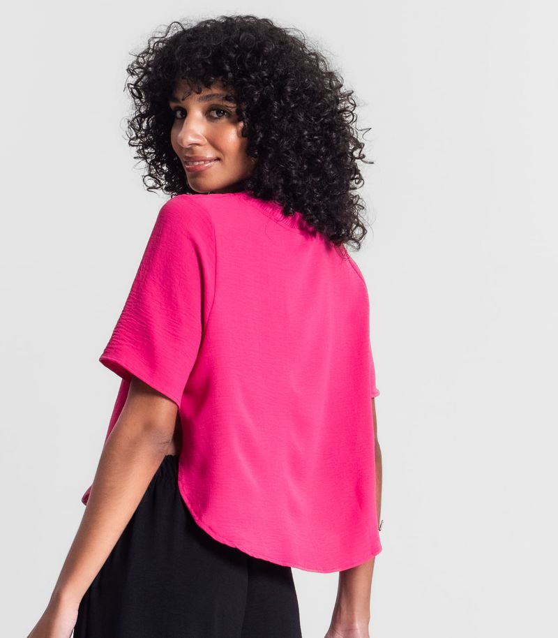 A Blusa Feminina Manga Curta Rovitex é uma peça elegante e moderna, ideal para diversas ocasiões. Confeccionada em air flow, oferece uma sensação de leveza e conforto durante todo o uso. O decote em retilínea adiciona um toque sofisticado, enquanto o transpasse na frente que se estende para as costas cria um visual assimétrico e atraente. A barra arredondada complementa o design, proporcionando um acabamento fluido e contemporâneo.