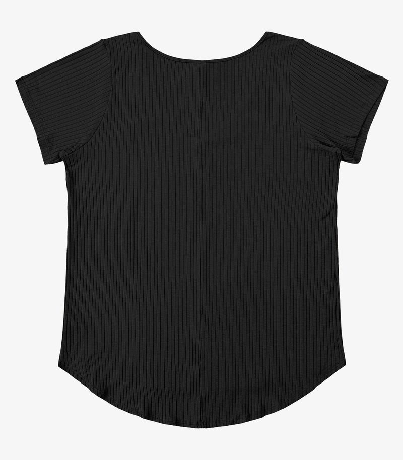 A Blusa Plus Size da Infinita Cor é confeccionada em Malha Ribana Canelada, um tecido que proporciona um ajuste confortável e elegante. Esta blusa possui um decote em V, que alonga e valoriza a silhueta. A parte das costas é alongada, oferecendo um caimento diferenciado e mais cobertura. Além disso, a barra arredondada adiciona um toque moderno e sofisticado ao design da peça