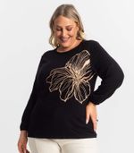 Blusa Feminina Plus Size Manga 7/8 Secret Glam Preto