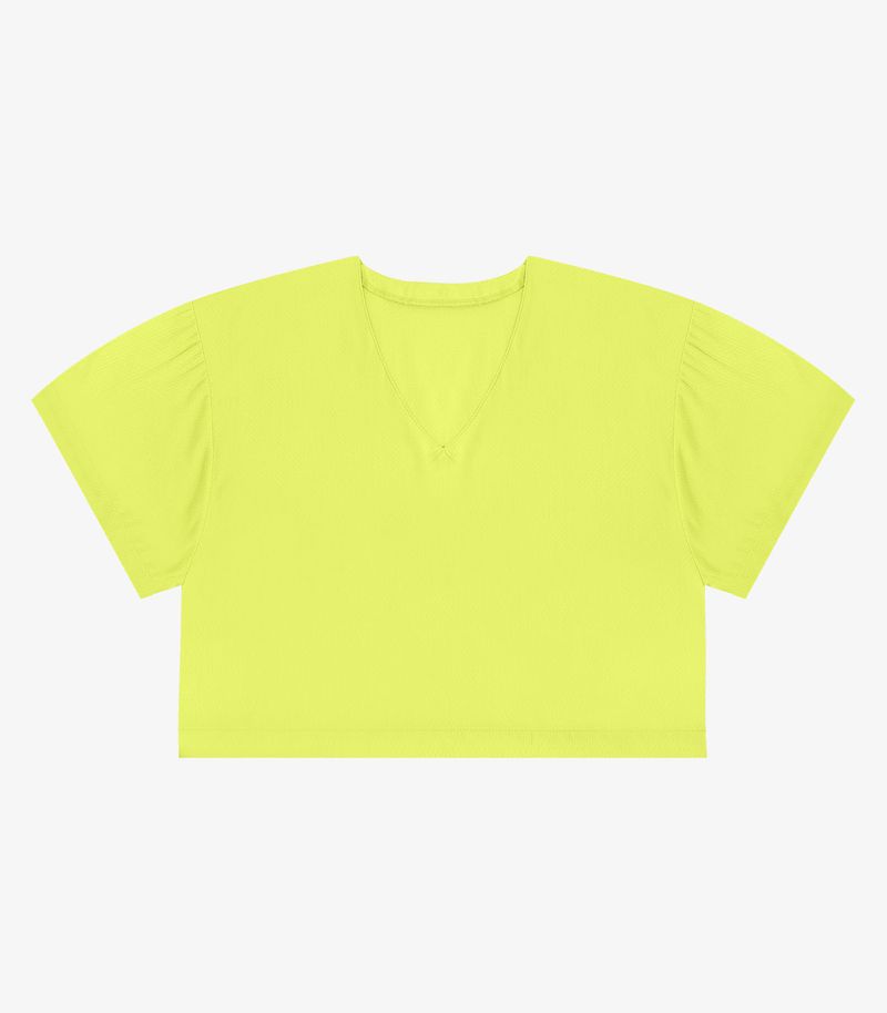 Blusa Feminina Infinita Cor, confeccionada em viscose leve e confortável. Possui decote em V, mangas curtas soltinhas que garantem liberdade nos movimentos e modelagem um pouco mais curta, perfeita para compor looks modernos e fresquinhos. Ideal para dias quentes e combinações descomplicadas no dia a dia.