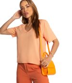 Blusa Feminina Endless, desenvolvida em Viscose Khyara. Possui manga curta, decote V com detalhes em pesponto. Alongada na parte de trás. Peça básica e confortável, ideal para o dia a dia! Combine com: jeans e sapatilhas.