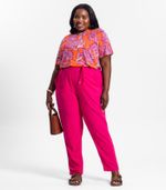 A Blusa Manga Curta Feminina Plus Size Secret Glam é uma peça vibrante e sofisticada, feita em viscose creponada que oferece leveza e conforto. Com estampa rotativa, adiciona um toque moderno e dinâmico ao visual. O decote com revel e o forro em formato de V garantem um ajuste elegante e bem estruturado. A barra com elástico virado e rebatido proporciona um caimento ajustado e confortável, enquanto o friso na gola completa o design com um detalhe refinado.