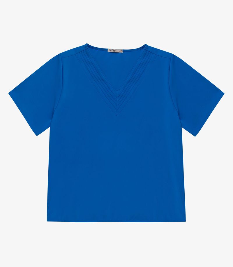 Blusa Manga Curta Plus Size Secret Glam Azul