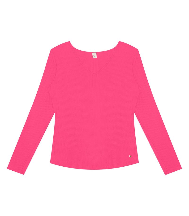 FemininoRoupasBlusaBlusa Manga Longa Em Ribana Canelada Rovitex Rosa