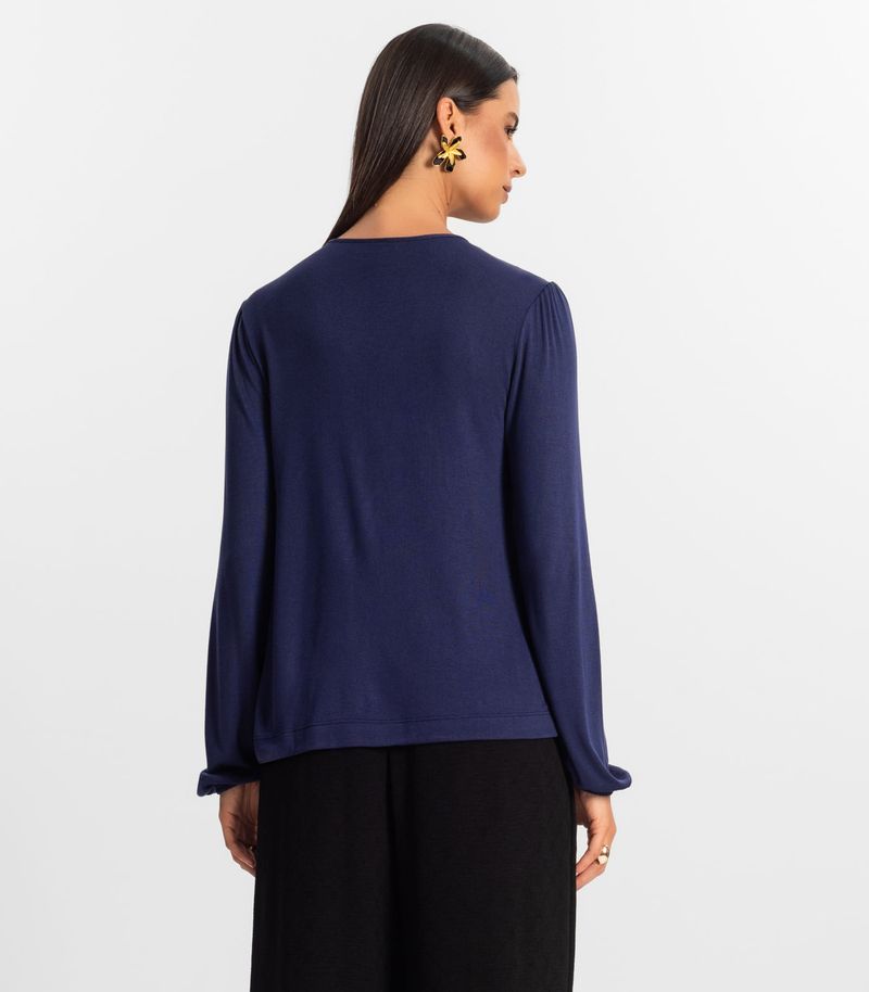 A Blusa Feminina Rovitex, feita em Visco Tricot, combina sofisticação e leveza em um design delicado. Possui decote em V, que valoriza o colo, e franzido no ombro e na cava, adicionando charme e fluidez à peça. O diferencial fica por conta do túnel para passar rolotê, permitindo uma amarração frontal, ideal para ajustar o caimento conforme o estilo desejado. A manga ampla com acabamento em elástico proporciona conforto e um toque elegante, tornando essa blusa perfeita para composições modernas.