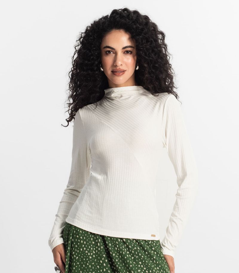 A Blusa Feminina Rovitex é a peça perfeita para quem busca um look moderno e sofisticado. Confeccionada em Ribana Canelada de Viscose, oferece um caimento confortável e ajustado ao corpo, além de um toque macio e leve. Seu design conta com gola alta, proporcionando um visual elegante e versátil. O recorte com listras na diagonal adiciona um detalhe estiloso e alongador à peça, tornando-a ainda mais especial