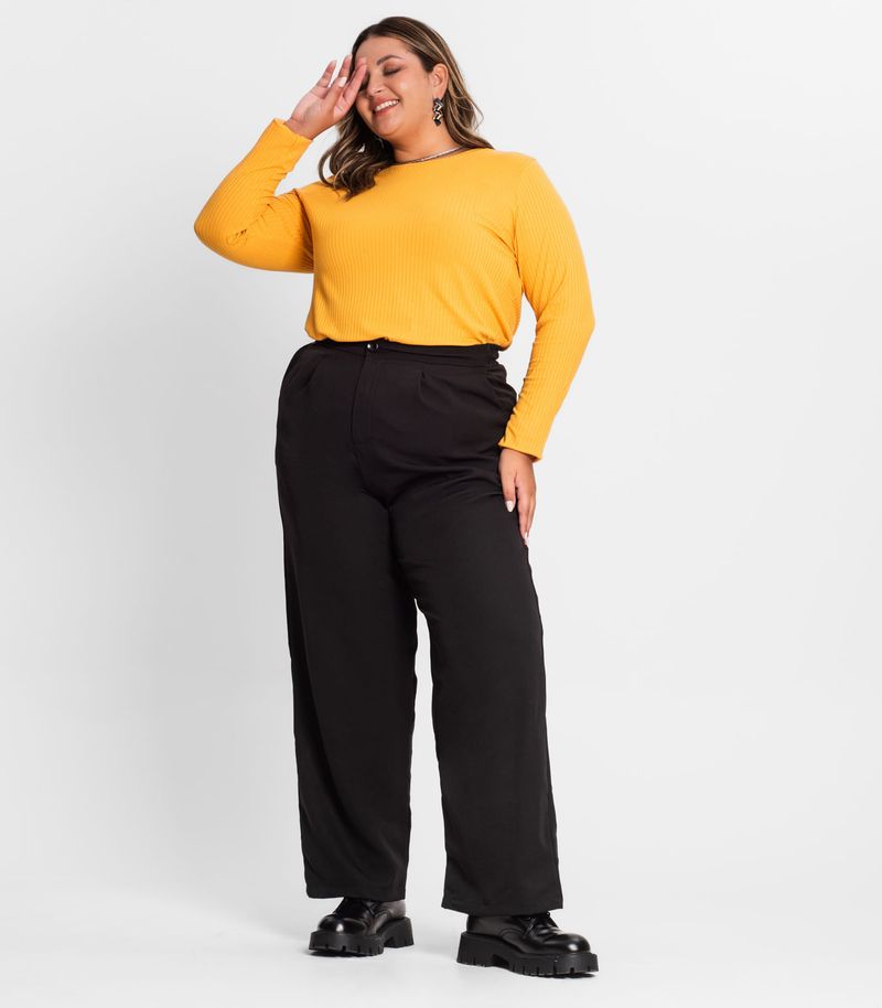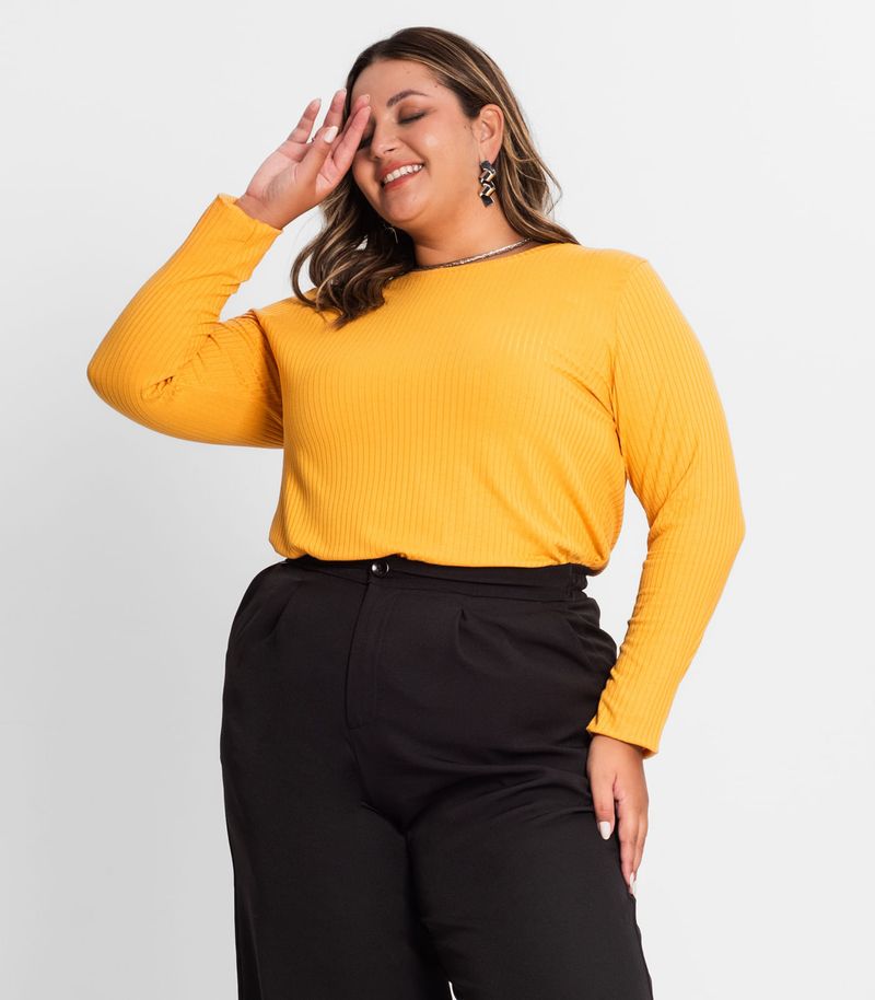 FemininoRoupasPlus SizeBlusaBlusa Manga Longa Ribana Canelada Secret Glam Amarelo