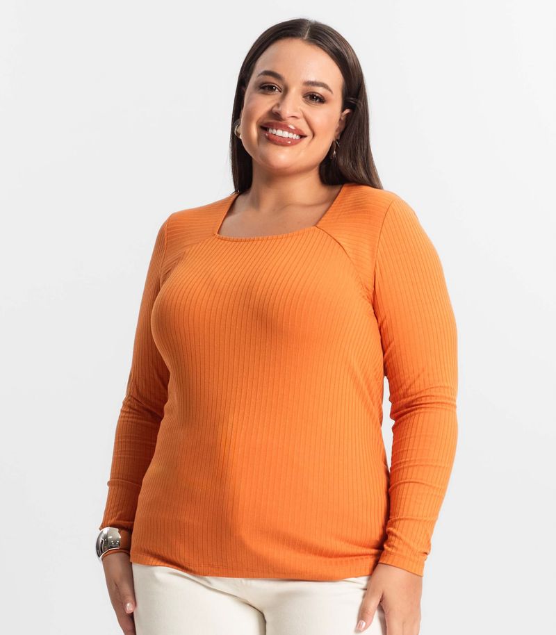 Blusa Plus Size Em Ribana Canelada Secret Glam Laranja
