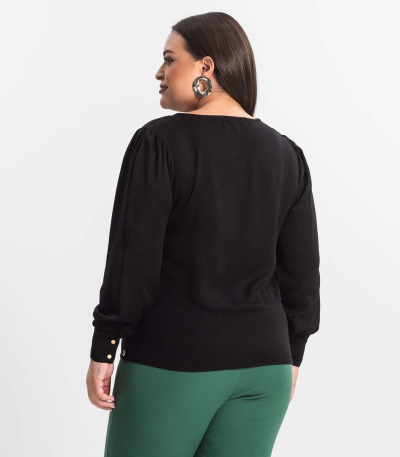 Blusa Plus Size Feminina Manga Longa Secret Glam Preto