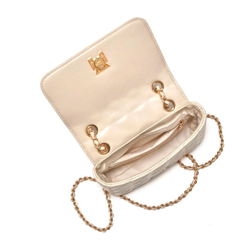 Bolsa Crossbody Feminina Via Marte, confeccionada em PU com matelassê geométrico, alça de corrente ajustável, amplo espaço interno e fechamento em botão magnético. Medidas aproximadas: 17,5cm de largura, 12cm de altura e 6cm de profundidade. Coleção: Atemporal. Aproveite e compre online. Ref: B1-309-01