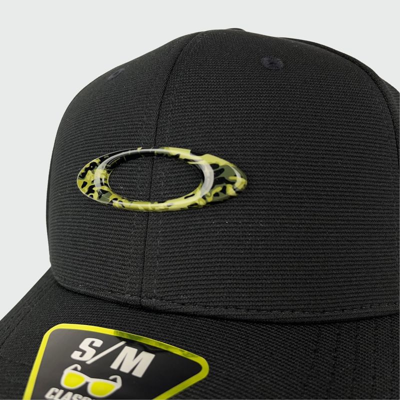 - Logo Oakley metálico frontal e bordado traseiroIlhós para ventilação e faixa acolchoada na testa