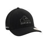 Boné QuikSilver feito em modelagem 6painel Flexfit, faixa anti suor por toda a circunferência interna, assinatura broken contornada em uretano dourado solado centralizado no painel frontal, aba interna lisa, bordado FLEXFIT aplicado ao longo da lateral direita e etiqueta localizada na barra traseira.
