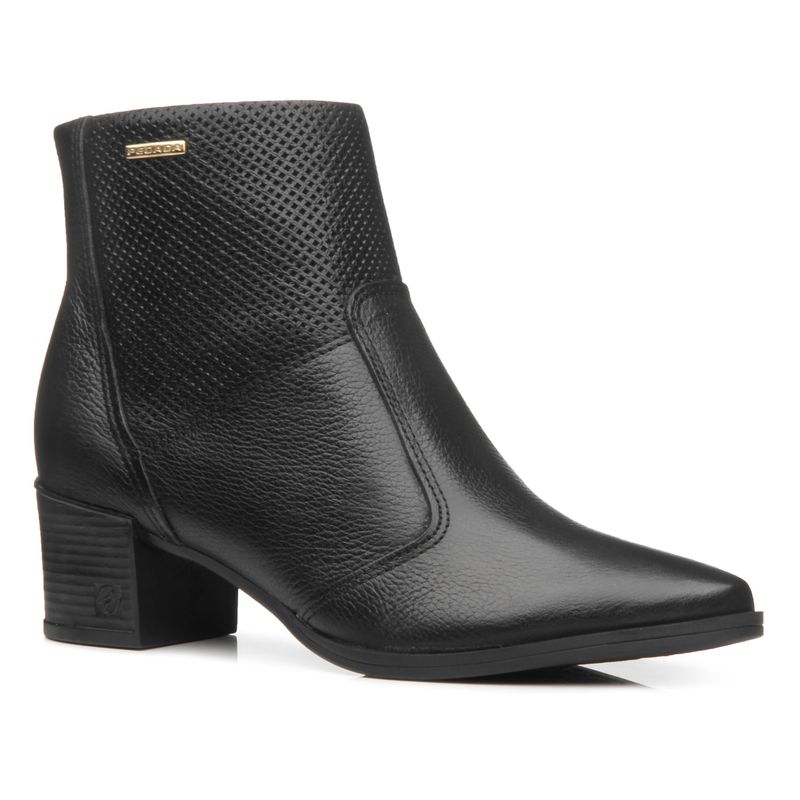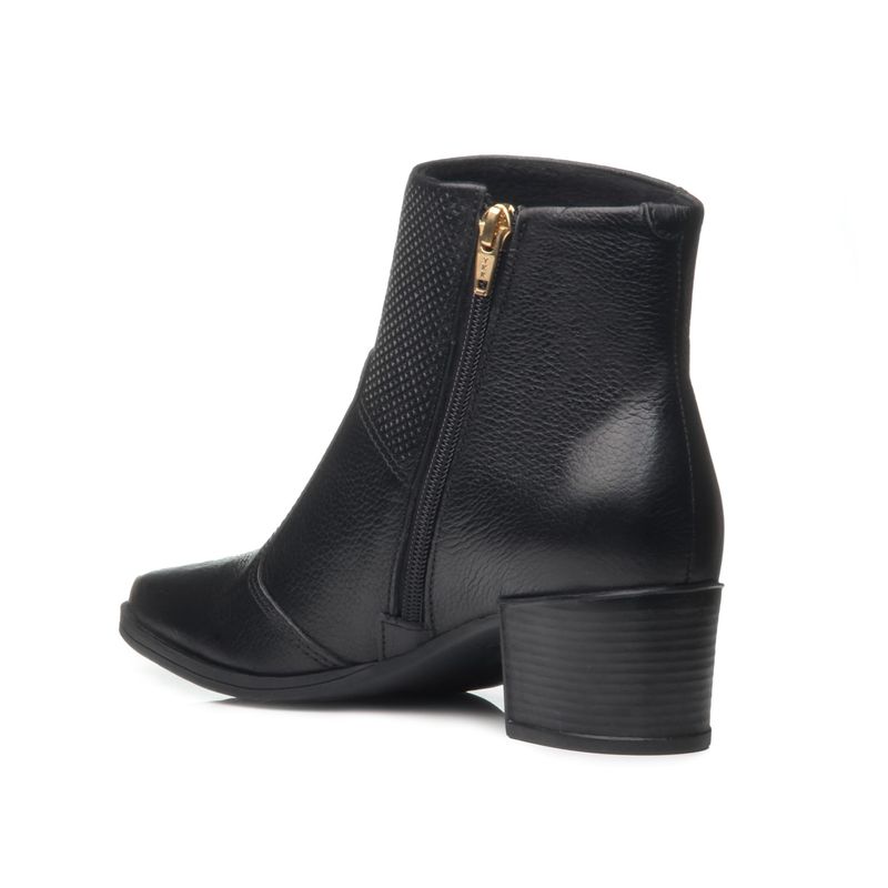 Essa bota em couro preto é super estilosa. Ela é feita com a nossa Tecnologia SOFT TOUCH, onde cada detalhe é pensado para deixa-la extremamente macia, desde a matéria prima até os processos de produção. São muitos diferenciais, começando pelo forro, que é de tecido atoalhado e toque suave. A palmilha é macia. Já o solado é antiderrapante e de alta flexibilidade, com um salto bloco de 5 cm, oferecendo conforto e versatilidade ao produto, e possui sistema Bubble Impact, com pequenas bolhas na parte inferior que reduzem os impactos. Além de tudo isso, as costuras utilizadas na sua produção são programadas (automáticas), assim não é necessário usar cola entre as partes do couro do cabedal, desta forma o couro continua com a sua maciez original e não fica endurecido. Tudo isso para deixar o calçado macio e confortável para o uso. O modelo ainda possui zíper na parte interior que facilita o calce. Clássica, fácil de calçar e de combinar, ela é perfeita para quem procura por estilo sem abrir mão do conforto. Sinta esse conforto você também.