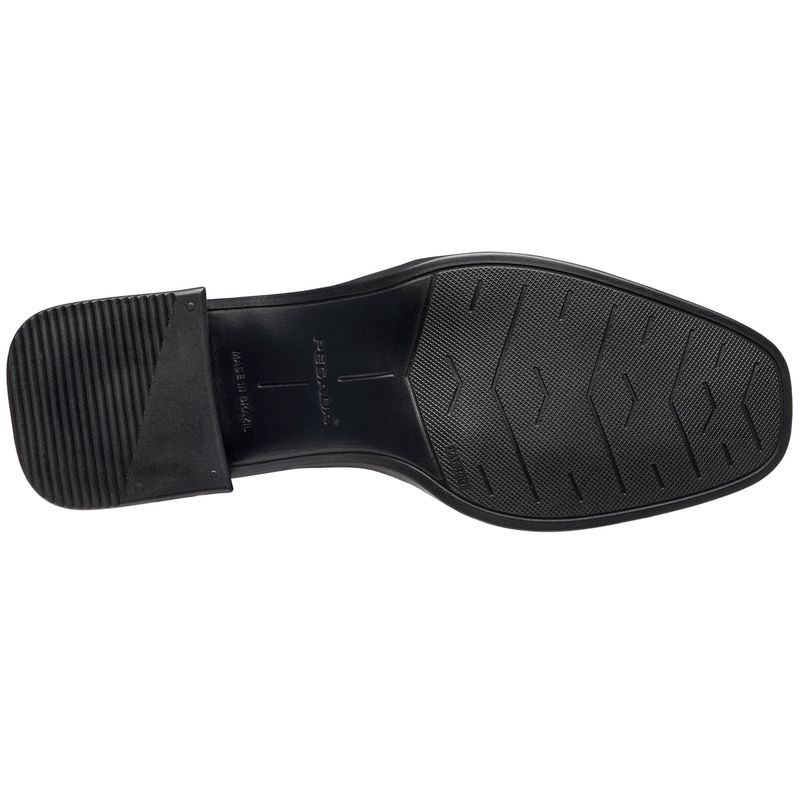 A palmilha é macia. Já o solado é de Pu emborrachado, muito leve e flexível, com um salto bloco de 5cm, levemente inclinado, que lembra a icônica torre italiana “Di pisa”, de onde veio a inspiração do nome dessa linha. Além de tudo isso, as costuras utilizadas na sua produção são programadas (automáticas), que dispensa o uso de cola entre as partes do couro e do cabedal, preservando a maciez original do couro.