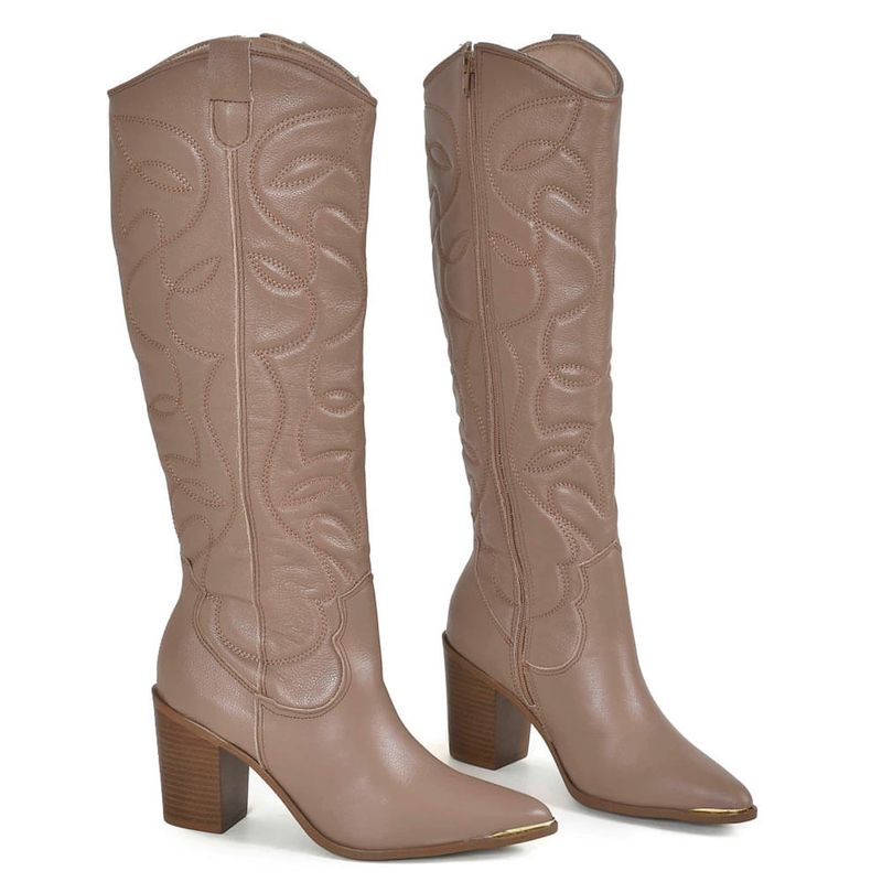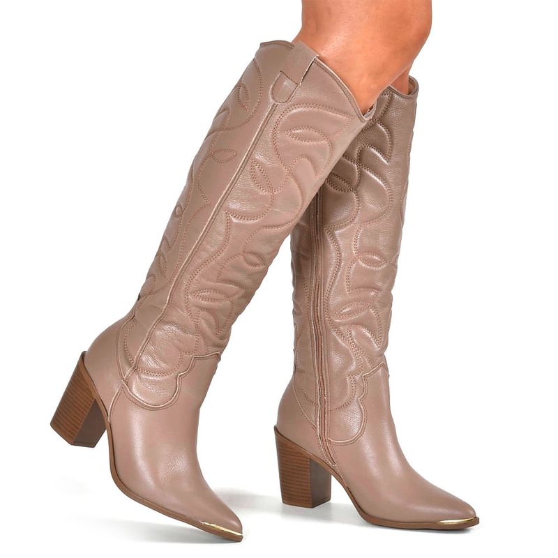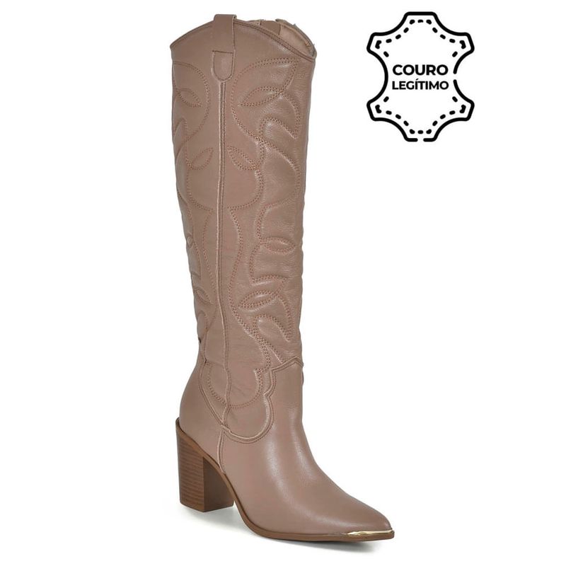 FemininoCalçadosBotaBota Texana de Couro e Cano Longo Via Marte Bege 079-002-01