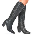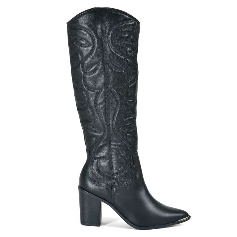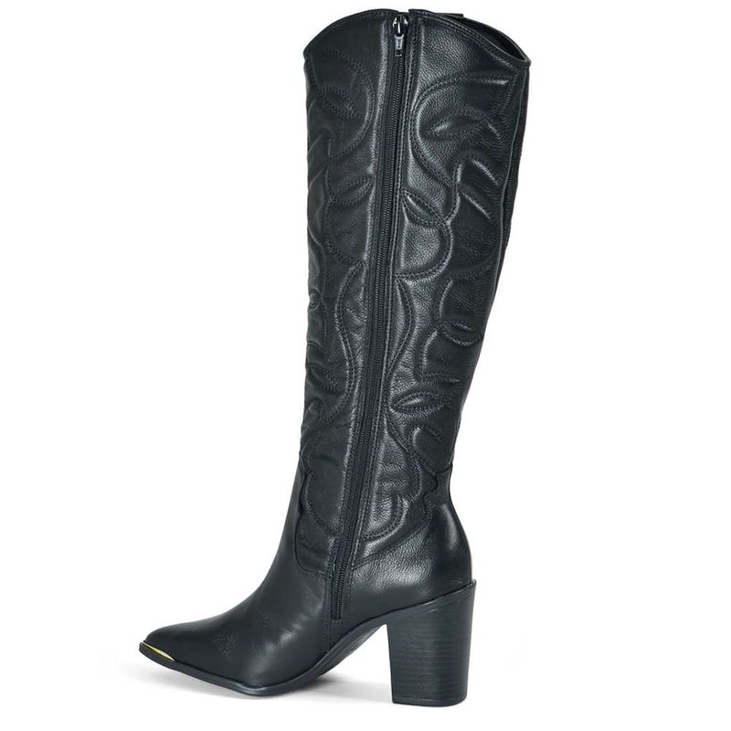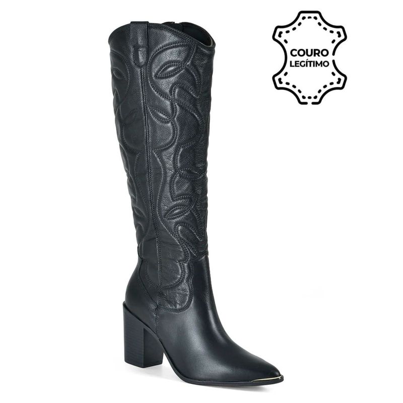 Bota Texana de Couro e Cano Longo Via Marte, confeccionada em couro, fechamento em zíper na lateral, palmilha EVA, solado de borracha e salto bloco de 8cm. Essa bota é puro luxo e uma tendência da estação, que tem alta durabilidade e estilo. Medidas aproximadas: panturrilha: 40cm, tornozelo: 30cm, cano: 41cm. Coleção: Outono/Inverno 2025. Aproveite e compre online. Ref: 079-002-01.