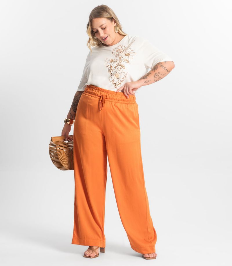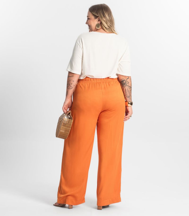 FemininoRoupasPlus SizeCalçasCalça Feminina Wide Leg Secret Glam Laranja