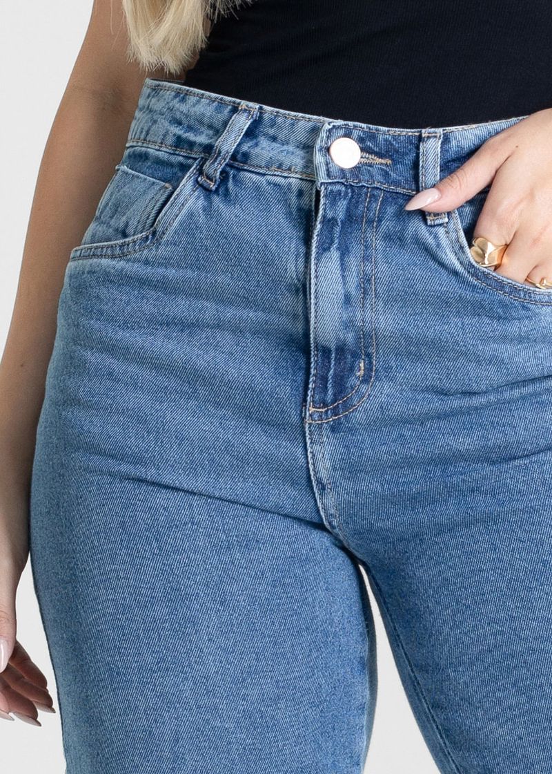 Calça jeans feminina de modelagem baggy, com caimento mais solto ao corpo. Cintura alta Fechamento com botão e zíper Bolsos frontais e bolsos traseiros funcionais Barra simples Tecido: Jeans Tipo de lavagem: Azul Cor: Azul claro