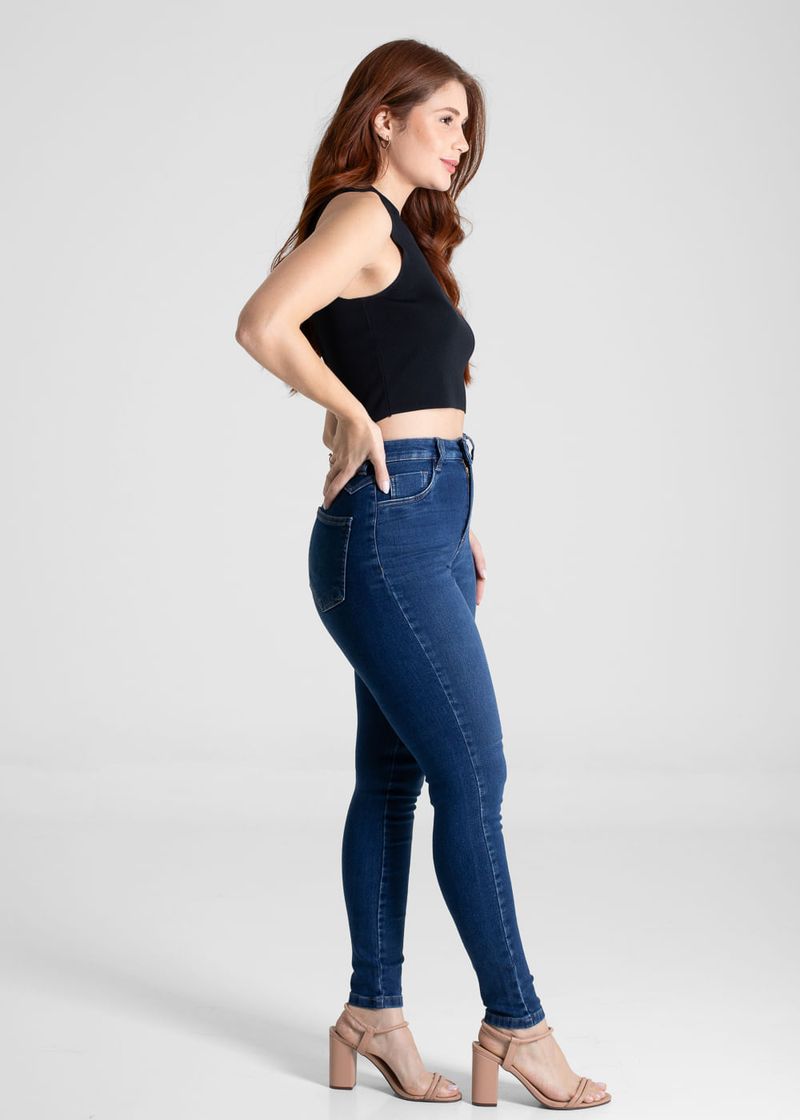 Calça cigarrete confeccionada em jeans. A modelagem é ajustada com o comprimento até o tornozelo. Cintura média Fechamento através de botão e zíper A barra tem acabamento simples Tecido: Jeans Tipo de Lavagem: Azul Cor: Azul