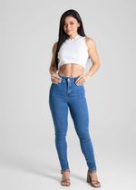 Calça levanta bumbum confeccionada em jeans. A modelagem tem quatro pences que valorizam as formas. Cintura médio Fechamento com botão metálico e zíper Bolsos frontais falsos e bolsos traseiros funcionais Barra simples Tecido: Jeans Tipo de lavagem: Azul Cor: Azul Claro