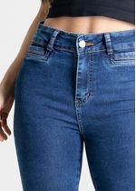 Calça levanta bumbum confeccionada em jeans. A modelagem tem quatro pences que valorizam as formas. Cintura médio Fechamento com botão metálico e zíper Bolsos frontais falsos e bolsos traseiros funcionais Barra simples Tecido: Jeans Tipo de lavagem: Azul Cor: Azul Claro