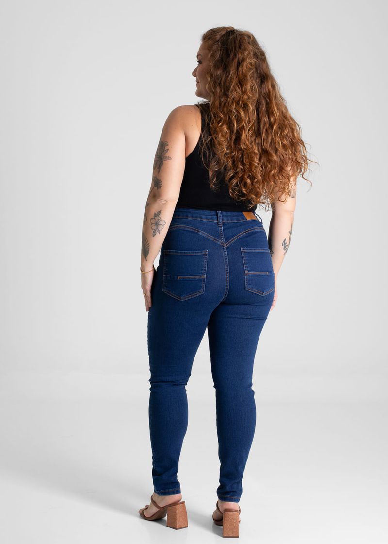 Calça push up plus size confeccionada em jeans. A modelagem tem tecnologia para dar um UP na silhueta. Cintura alta Fechamento com botão metálico e zíper Bolsos frontais falsos e bolsos traseiros funcionais Barra simples Modelagem: Plus size Tecido: Jeans Tipo de lavagem: Azul Cor: Azul medio