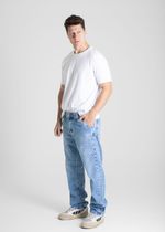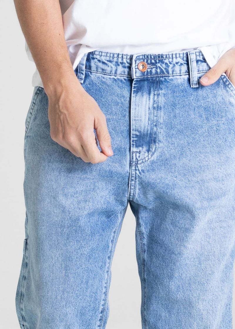Calça relaxed confeccionada em jeans. O design é relaxed.modelagem mais solta no quadril e nas pernas Cintura média Fechamento com botão metálico e zíper Bolsos frontais e bolsos protetores Barra simples Modelagem: Men relaxed Tecido: Jeans Tipo de lavagem: Azul Cor: Azul claro