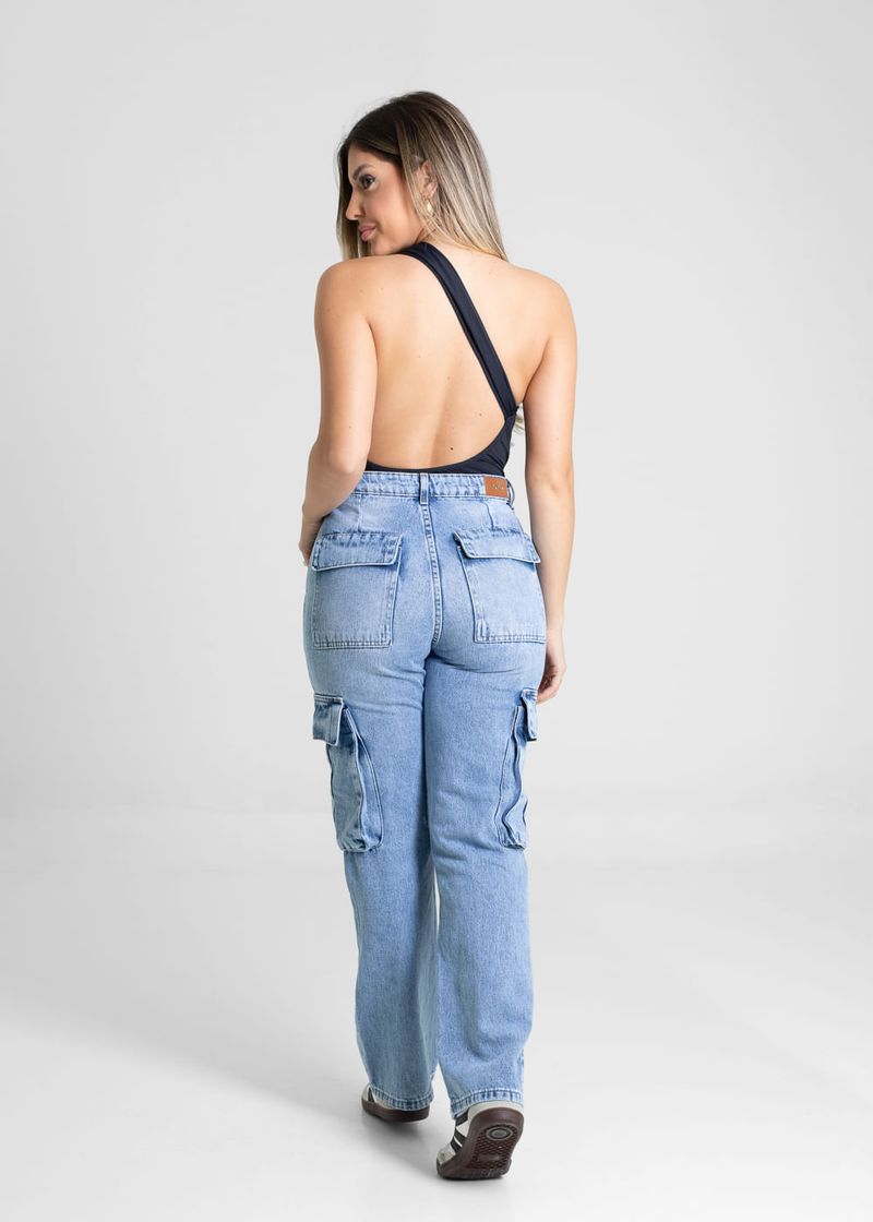 Calça Reta Petit confeccionada em jeans. A modelagem tem como diferencial os bolsos nas laterais. Cintura alta Fechamento com botão e zíper Bolsos frontais, laterais cargo e traseiros funcionais Barra simples Modelagem: Cargo Tecido: Jeans Tipo de lavagem: Azul Cor: Azul médio