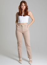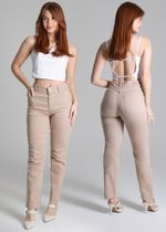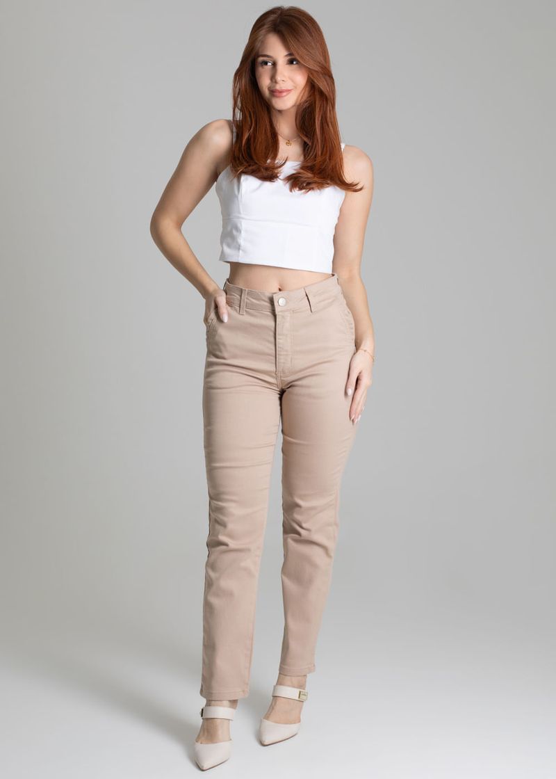 Calça sarja feminina de modelagem reta, com caimento mais solto ao corpo. Cintura alta Fechamento com botão e zíper Bolsos frontais e bolsos traseiros funcionais Barra com acabamento simples Tecido: Sarja Tipo de lavagem: Color Cor: bege capuccino