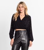 Camisa Feminina Manga Longa Com Strass Endless Preto