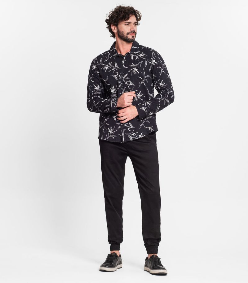 MasculinoRoupasCamisaCamisa Manga Longa Em Cotton Leve Diametro Preto