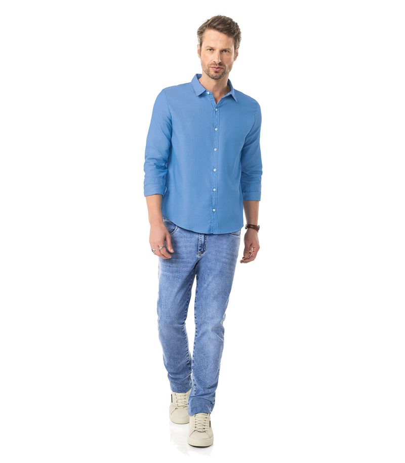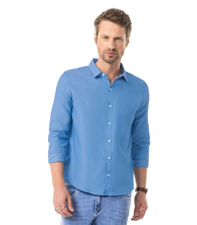 Camisa Manga Longa Fio Tinto Diametro Azul