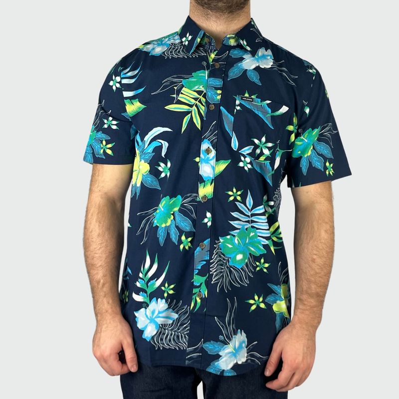 Incremente seu estilo e expresse sua personalidade única com esses tons tropicais selvagens. A camisa de manga curta Sunriser Floral, da Volcom, apresenta estampa atraente em um ajuste clássico de botão, para que você possa usá-la em qualquer lugar durante toda a estação.