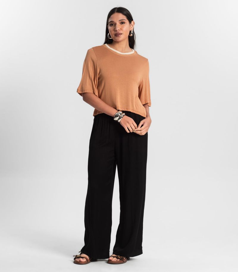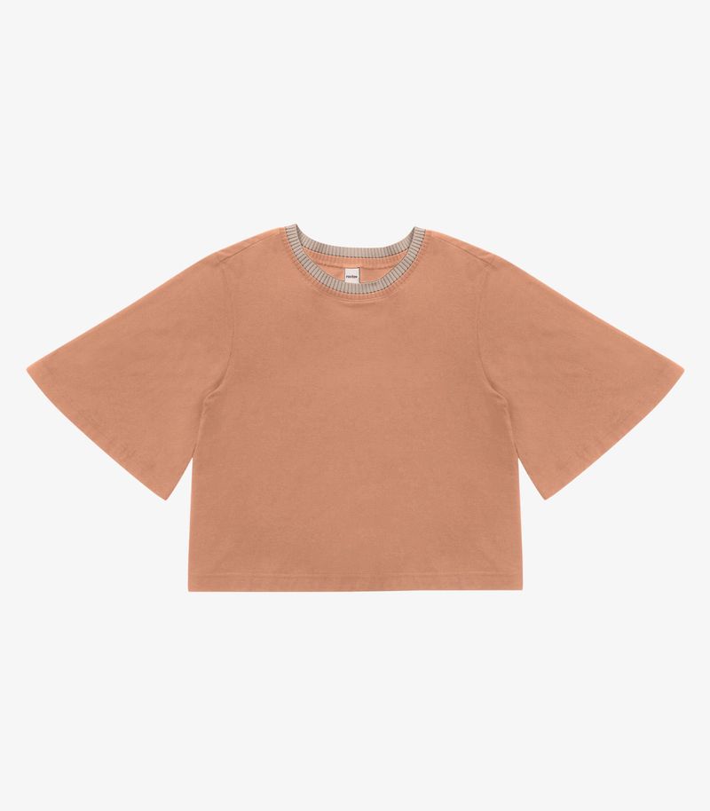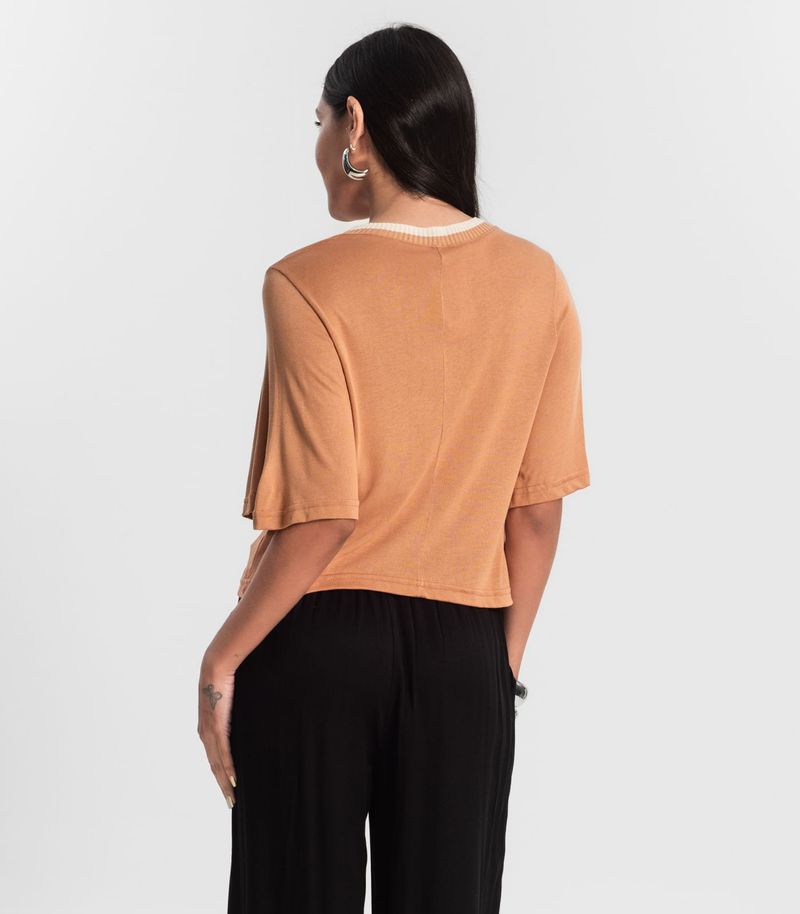 Camiseta Feminina Meia Malha Manga Fluída Rovitex Marrom