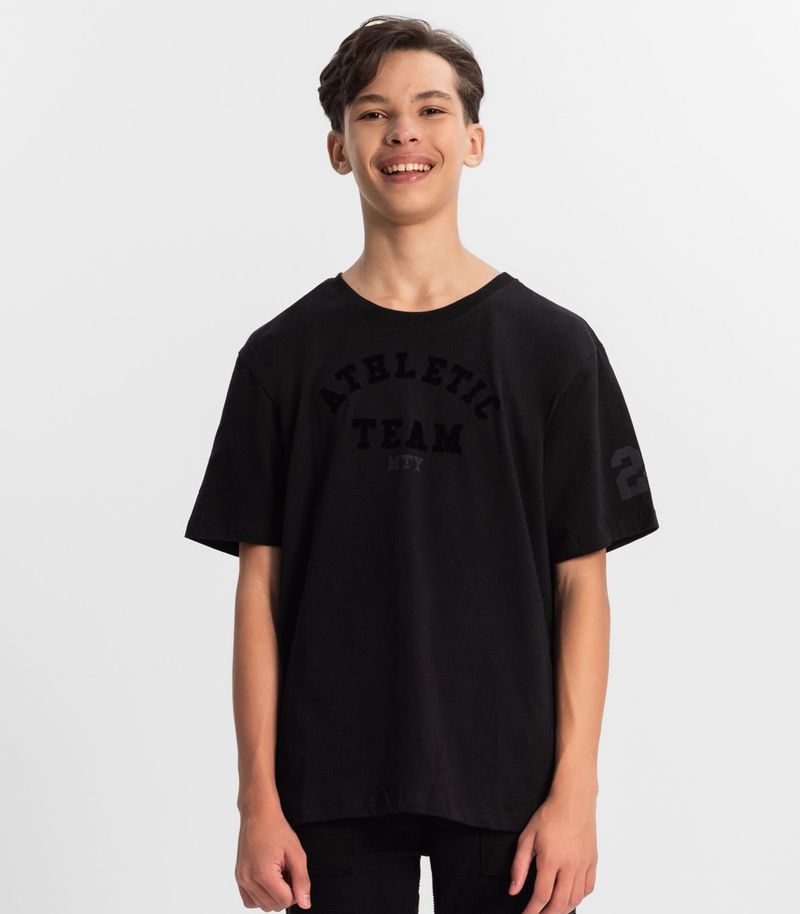 A Camiseta Juvenil Masculina em Meia Malha Minty é a escolha perfeita para um look casual e cheio de estilo. Confeccionada em meia malha, oferece conforto e leveza para o dia a dia. A estampa nas mangas traz um toque moderno, enquanto a estampa na parte da frente, com efeito flocado, adiciona sofisticação e personalidade à peça. Versátil e descolada, é ideal para jovens que buscam praticidade sem abrir mão do estilo, podendo ser combinada com diversos looks.