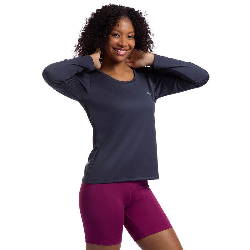 T-shirt manga longa feita de tecido leve, 100% poliéster, que não amassa e mantém seu corpo seco, além de protegido contra os raios UVA e UVB. Possui decote arredondado que mantém o colo protegido do sol e sua modelagem é levemente ajustada para uma sensação de conforto e liberdade. Conta ainda com mangas longas para uma maior cobertura do corpo e silk metálico em silicone, que acompanha o movimento de tecido. 100% Poliéster. Dry Action: Tecnologia que ajuda na absorção e eliminação do suor. É ideal para todo tipo de esporte, já que evita a aderência do tecido aocorpo, facilitando qualquer tipo de movimento. Solartech: Tecnologia desenvolvida para proteger o corpo dos raios UVA e UVB, que são nocivos à pele.