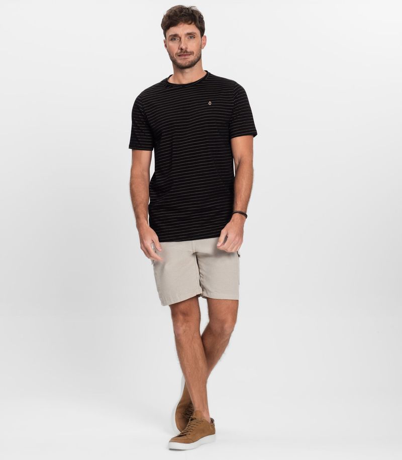 A Camiseta Masculina Manga Curta Diâmetro é feita em cotton listrado, trazendo um toque moderno e confortável. Possui bordado discreto na parte da frente, agregando estilo ao visual. O acabamento das mangas e da barra conta com costura dupla para maior durabilidade. O decote é reforçado na parte de trás, garantindo mais resistência e conforto no uso diário. Ideal para compor looks casuais com leveza e personalidade.