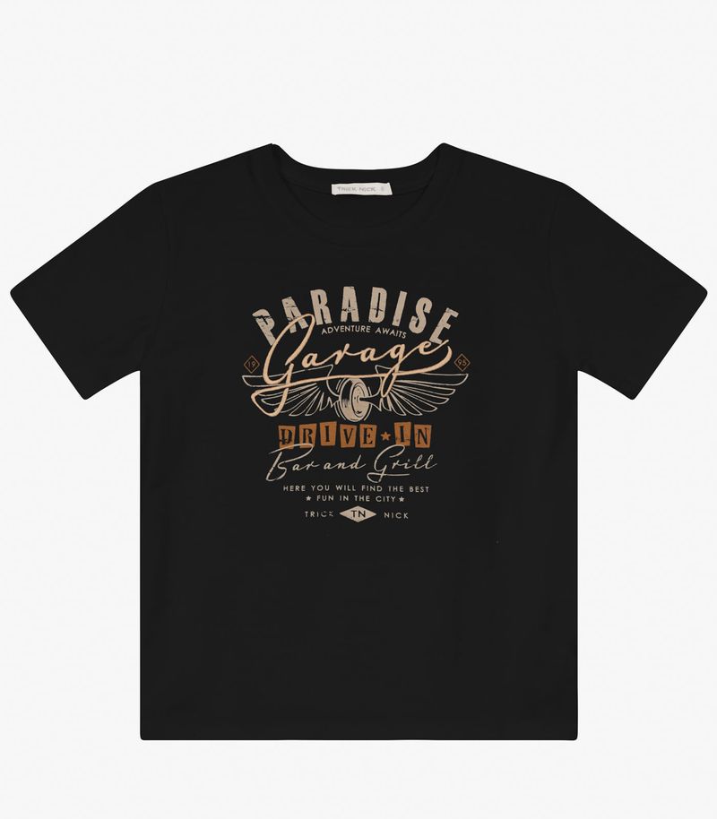 InfantilMeninoRoupasCamisetas e BlusasCamiseta Masculina em Meia Malha Trick Nick Preto