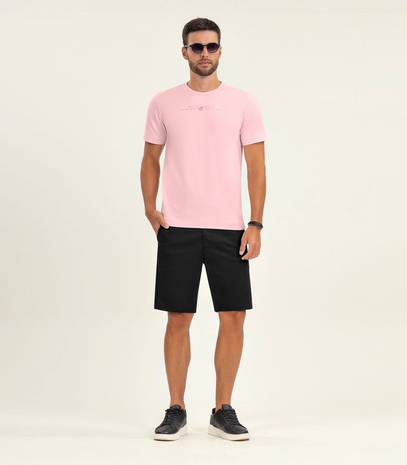 A Camiseta Masculina Manga Curta Diâmetro é confeccionada em meia malha, oferecendo conforto e maciez para o uso diário. Possui bordado frontal que garante um toque de estilo e exclusividade. O acabamento do decote é feito com friso aplicado, assim como as mangas, que têm bainha reforçada com costura dupla para maior durabilidade. A barra também é finalizada com bainha, mantendo o caimento alinhado. Ideal para compor looks casuais com praticidade e estilo.