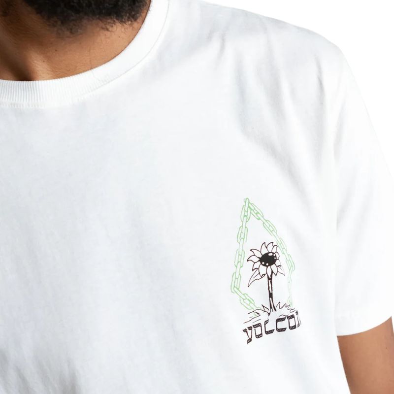 Camiseta Volcom Perseverance. Confeccionada em algodão 100% orgânico que tem como principal diferencial sua produção e cultivo que em comparação com o algodão convencional tem muito mais benefícios ao meio ambiente.