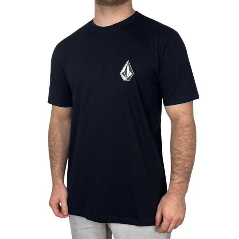 Camiseta Volcom Iconic. Possui modelagem regular, estampa em silk frontal, assinatura Volcom na manga e viés contrastante.